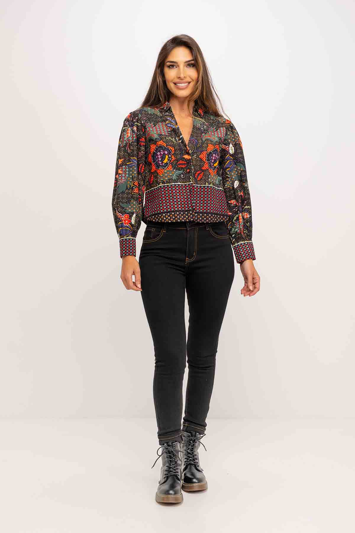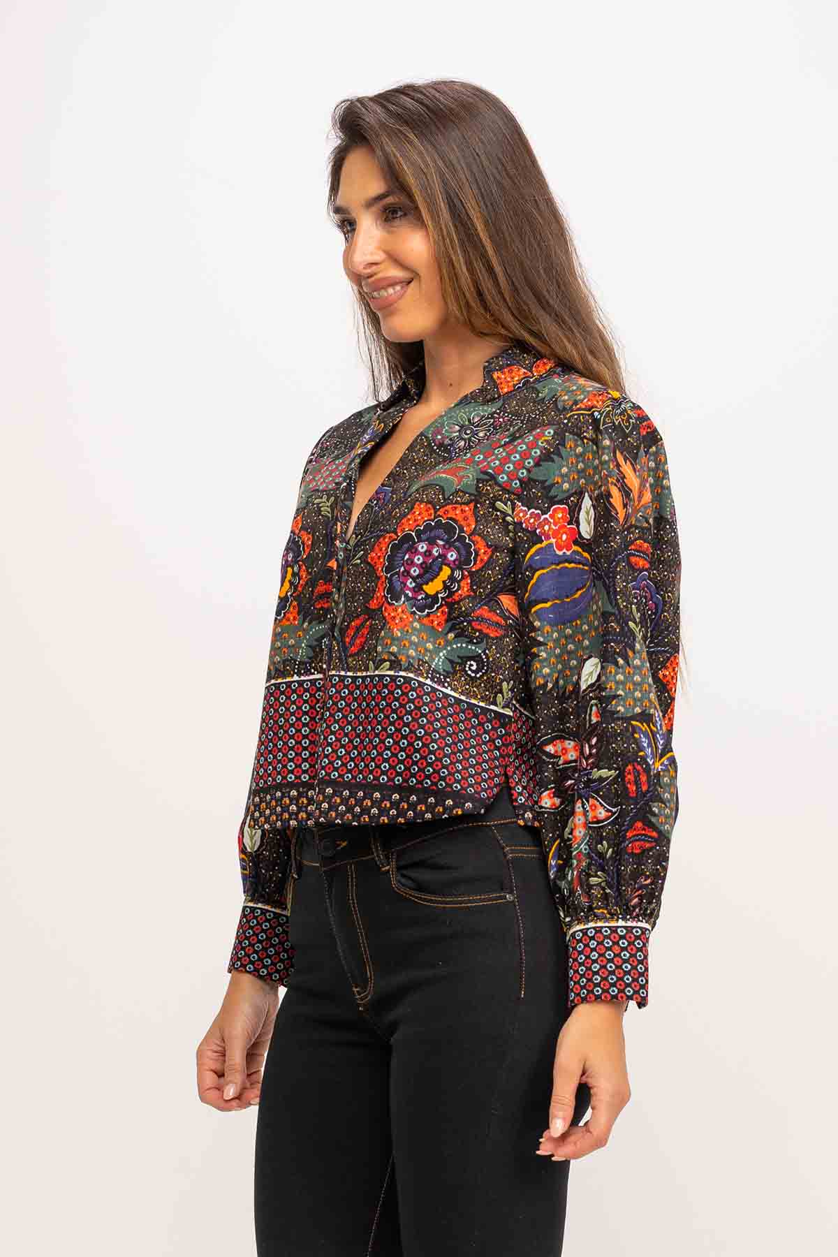 PRINTED CORDUROY BLOUSE SHORT 100%ALGODON