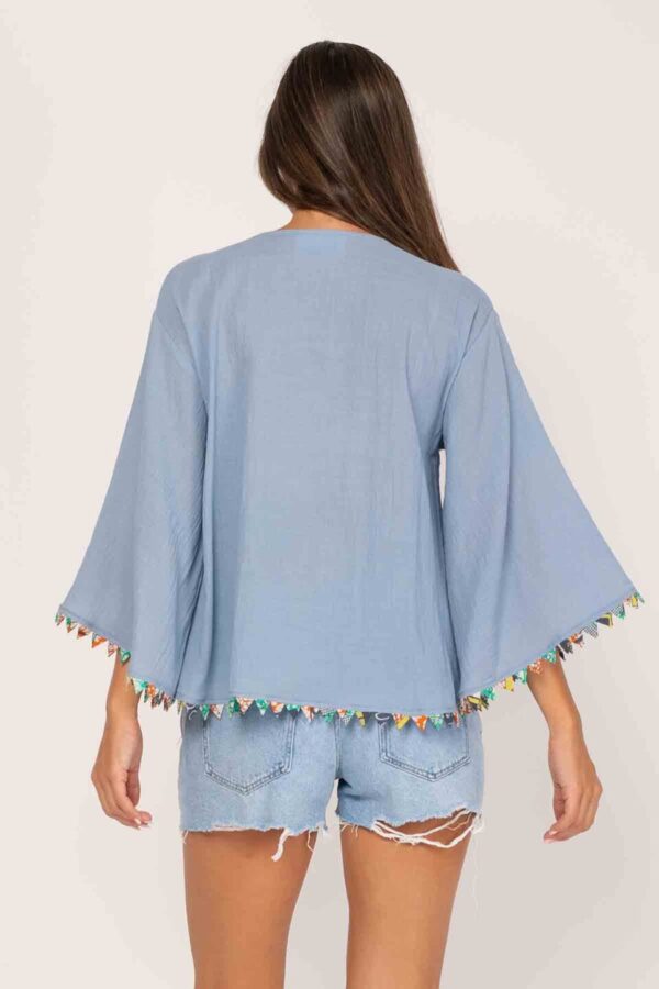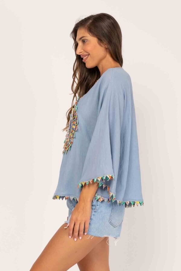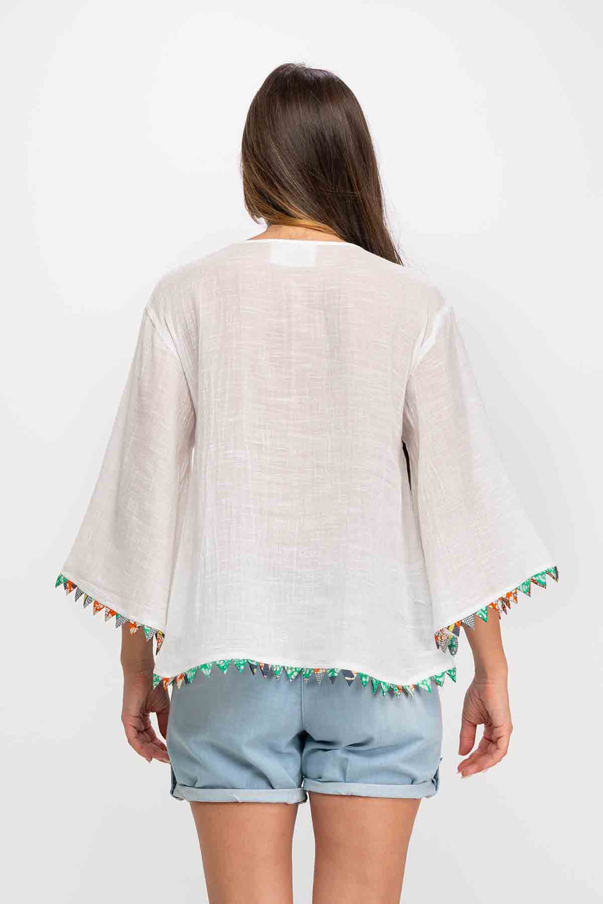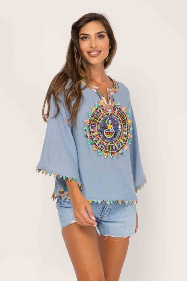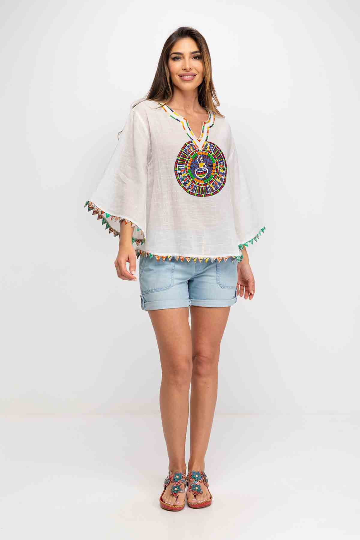 BLUSA LISA BORDADA EN COLORES Y CON LENTEJUELAS TAMBIEN EN COLORES