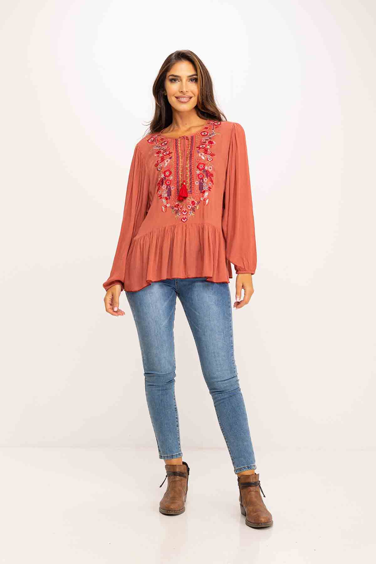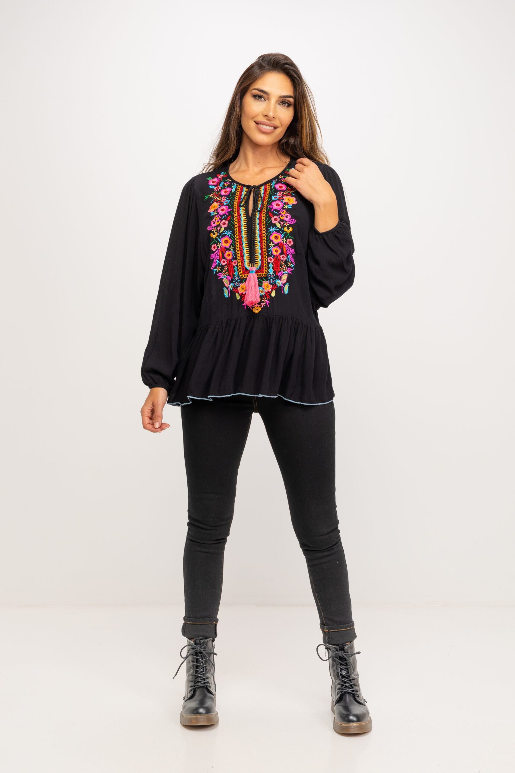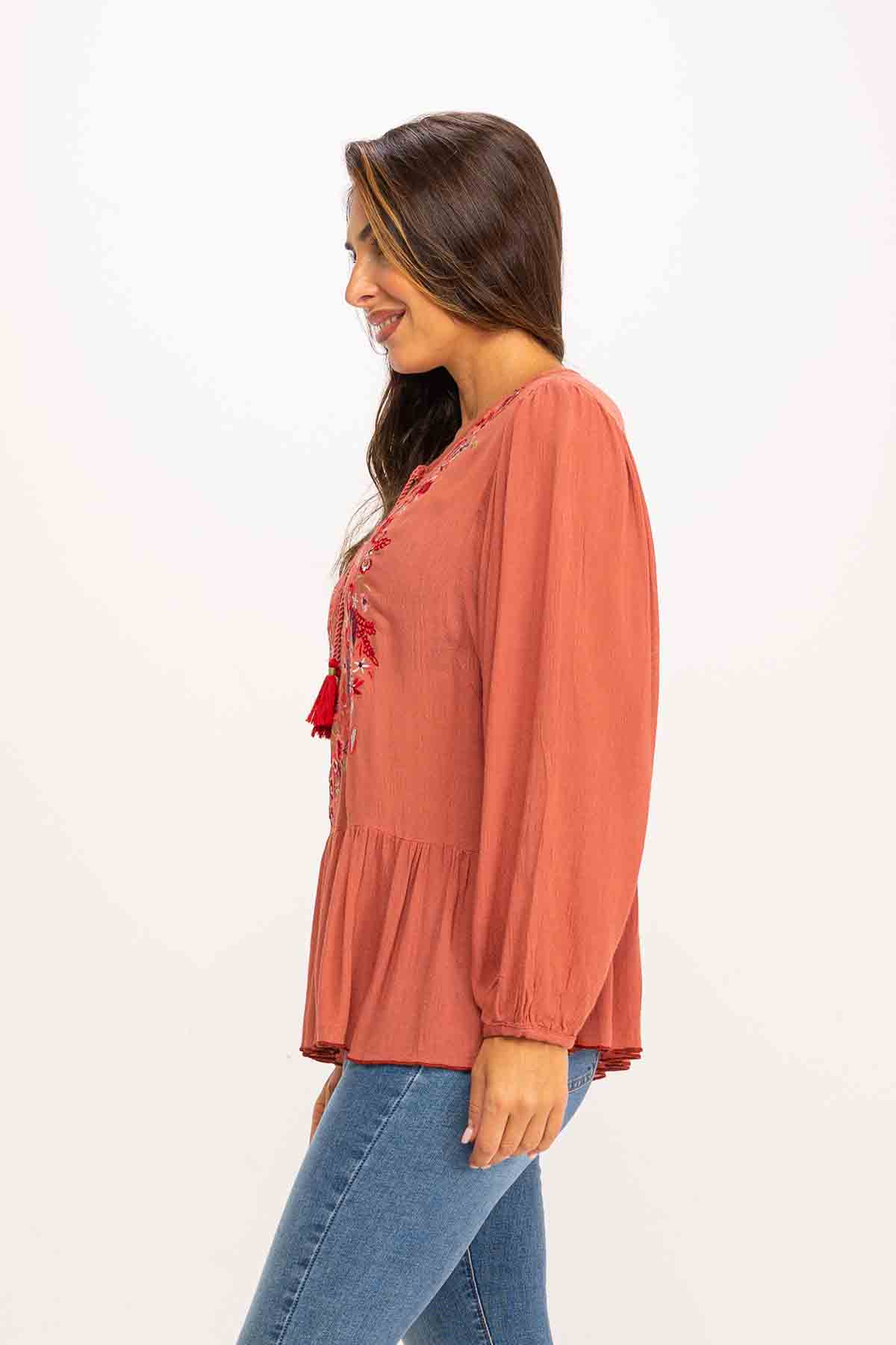 EMBROIDERY SOLID BLOUSE 100%ALGODON