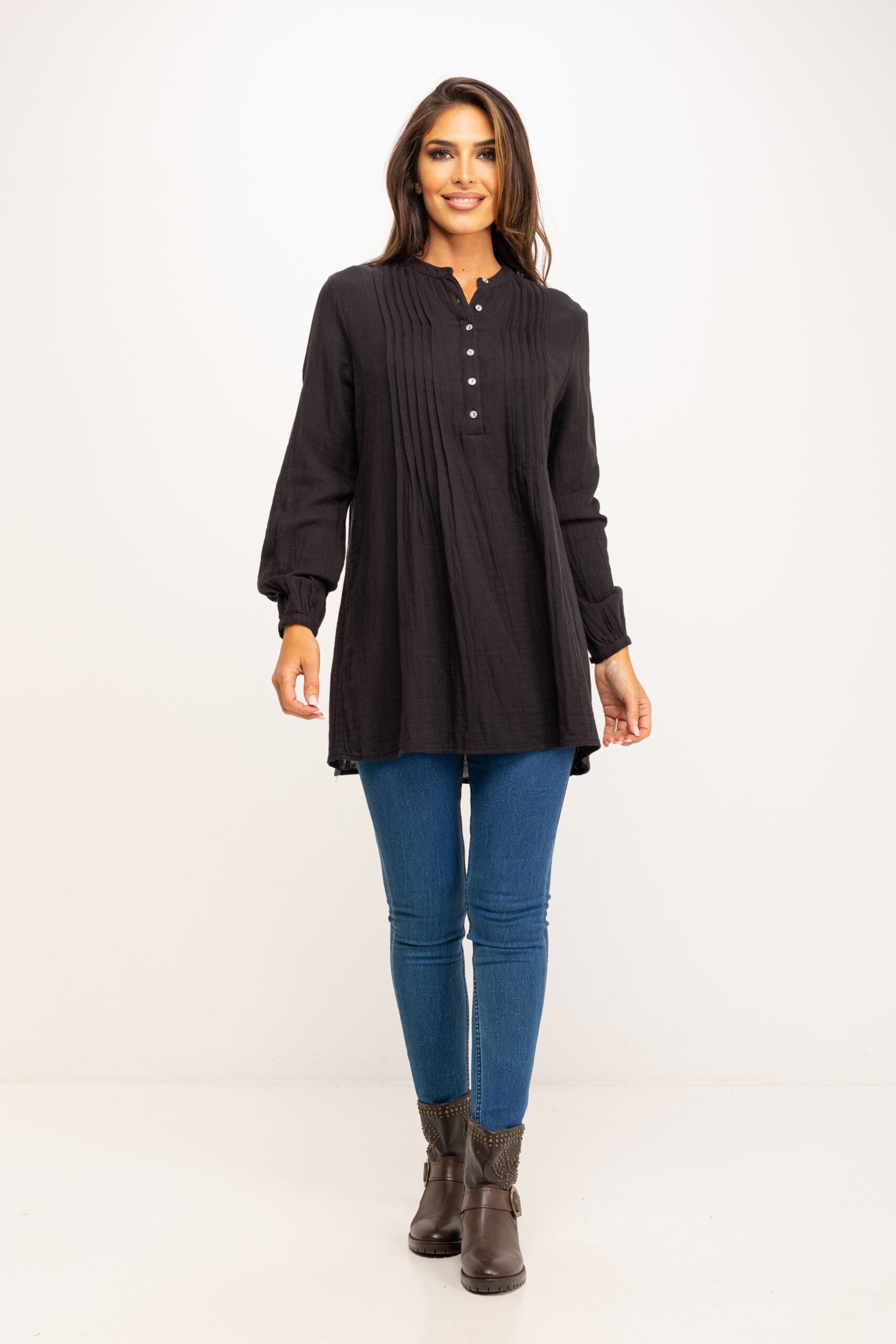 BLUSON CON PLIEGUES DELANTE Y DETRÁS MUY FACIL PARA COMBINAR 100%COTTON