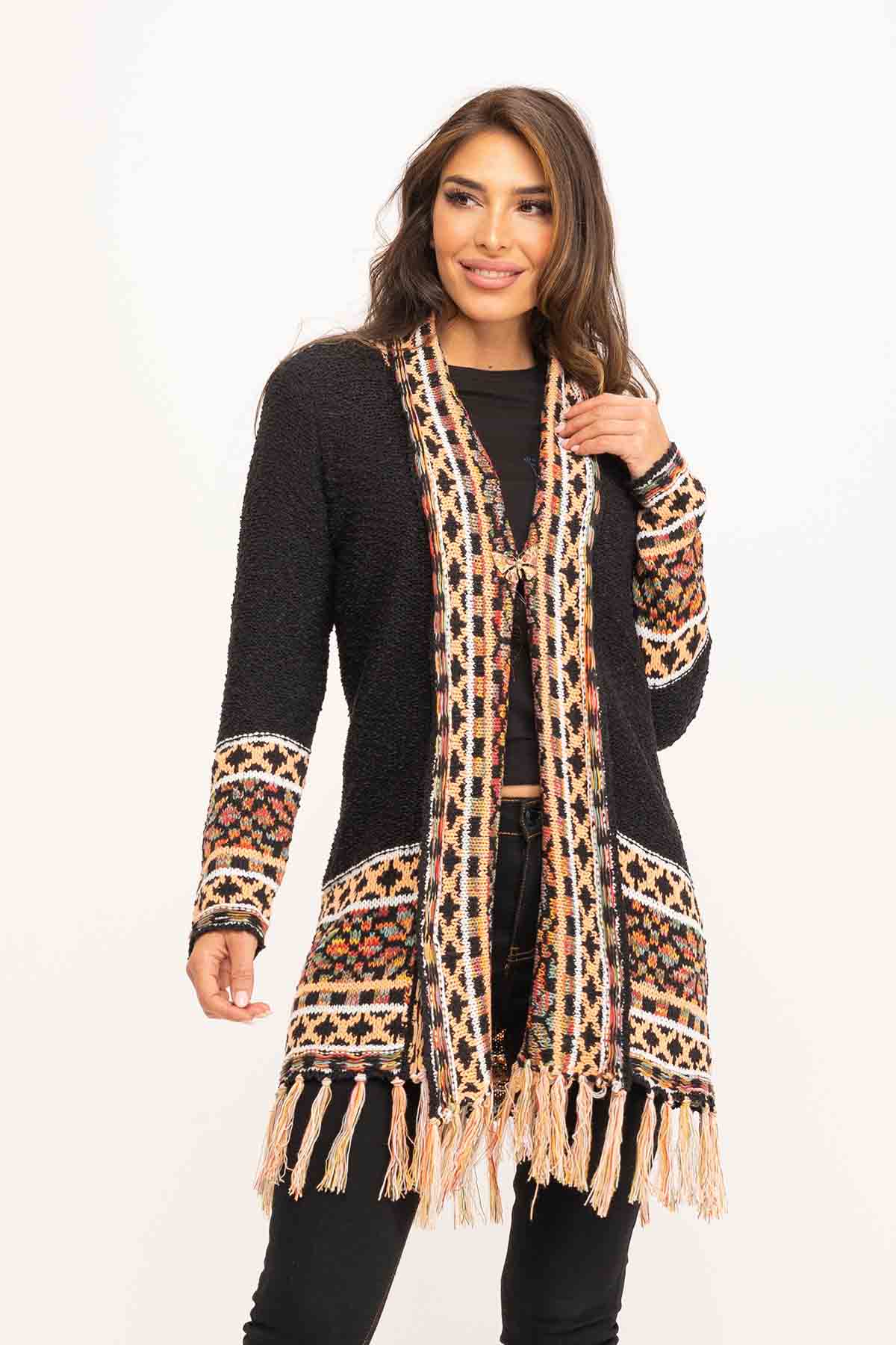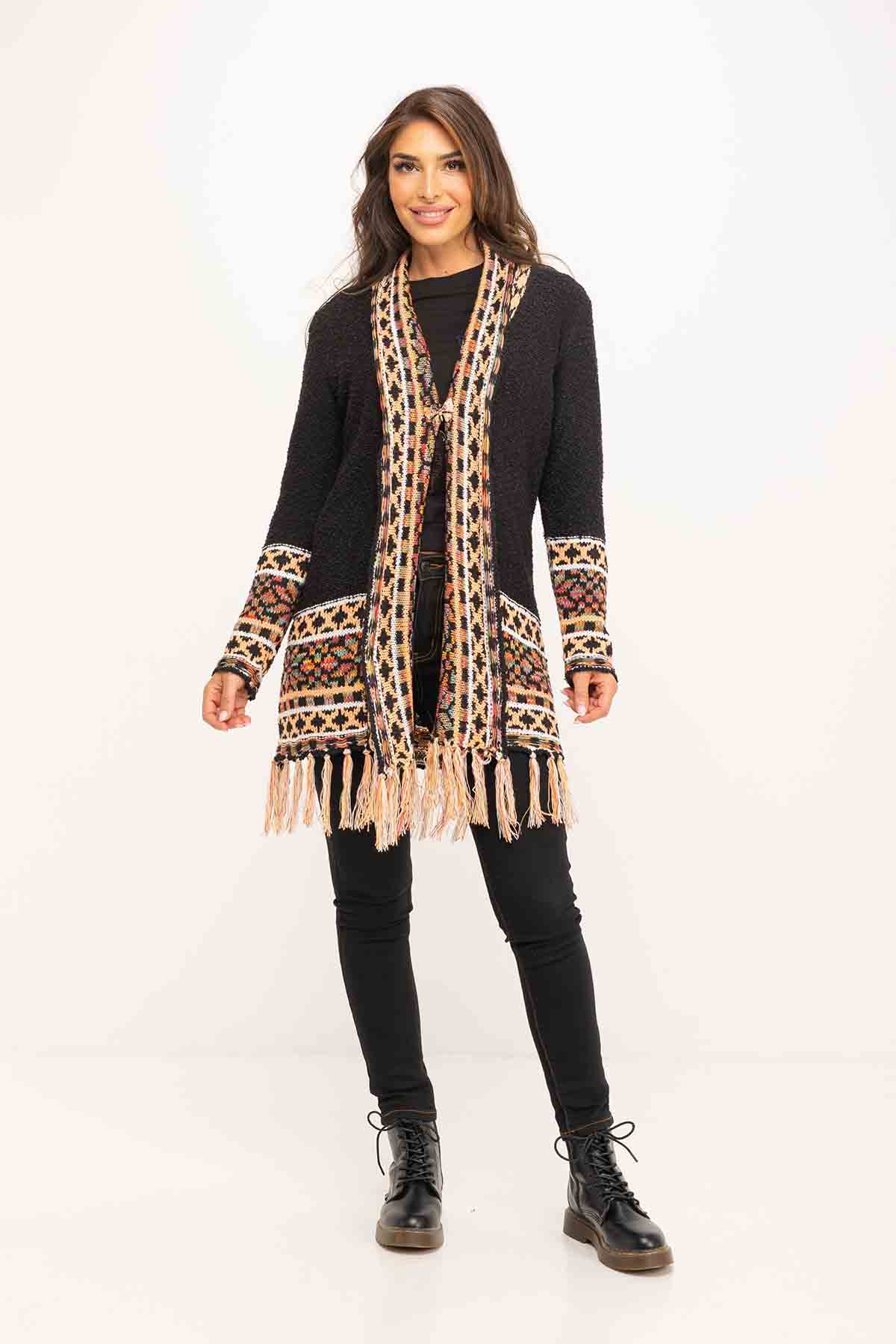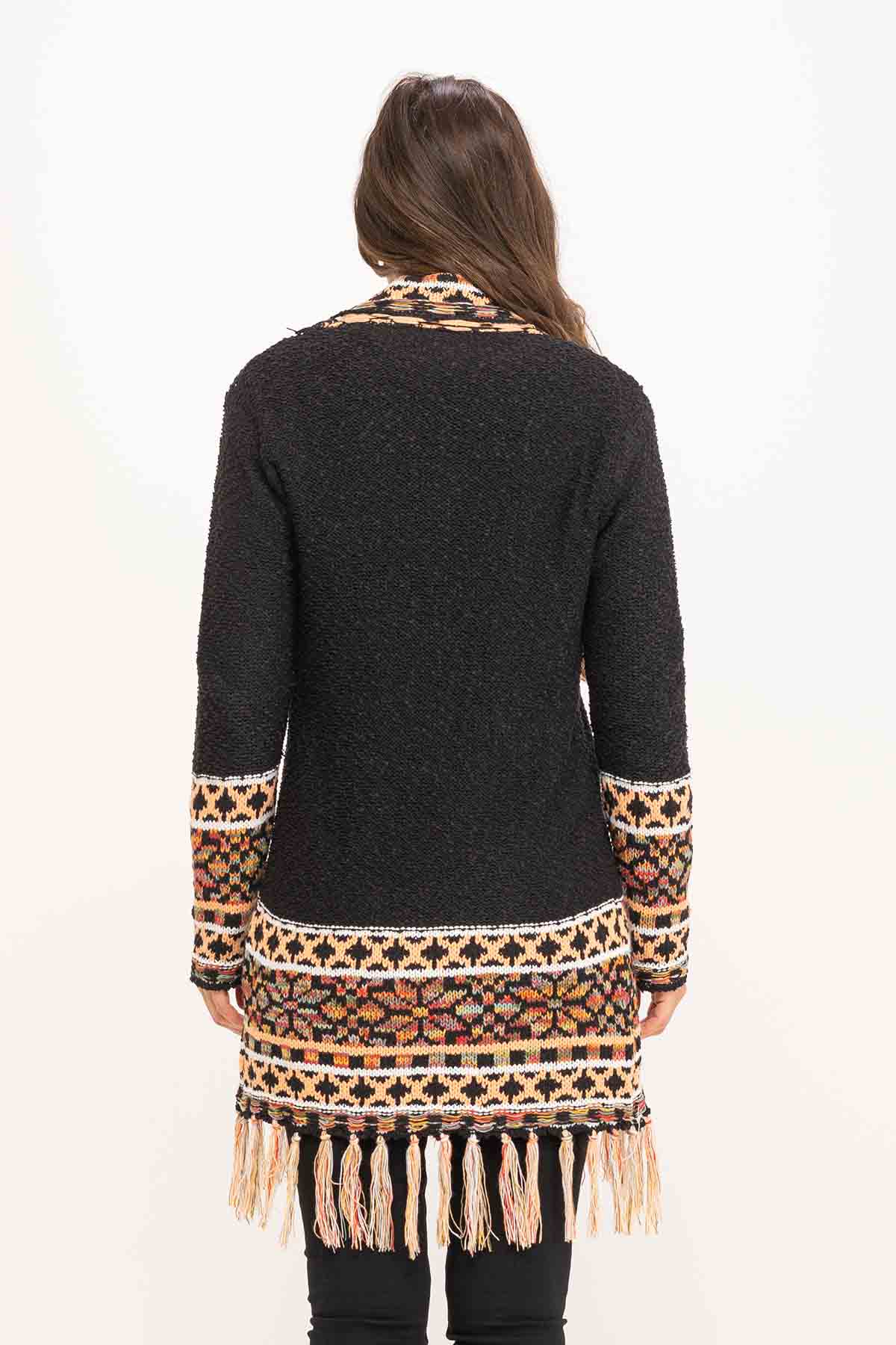 LONG CARDIGAN WITH FRINGES AND YACAR AT BOTTOMS 100%ACRILICO