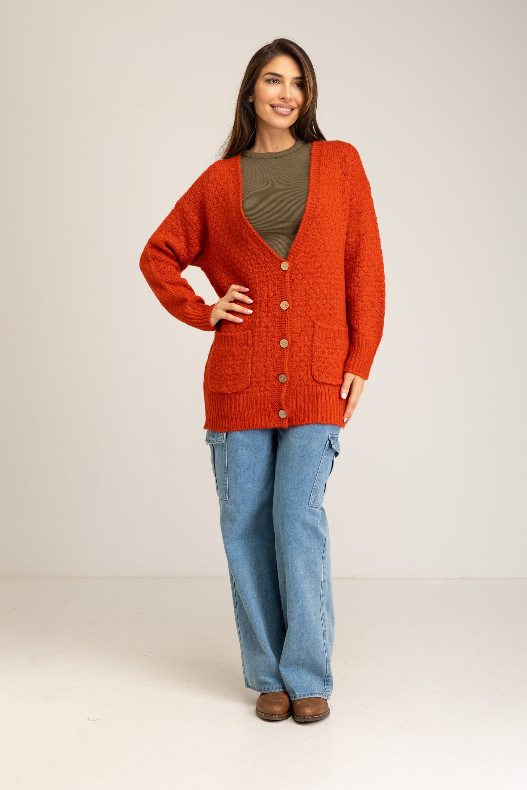 LONG CARDIGAN OPEN AT FRONT WITH BUTTONS 95%ACRILICO 5%RAYON