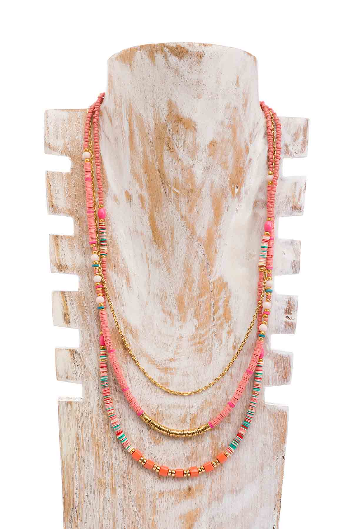 COLLAR DE VARIAS VUELTAS CON ABALORIOS DE COLORES Y METAL
