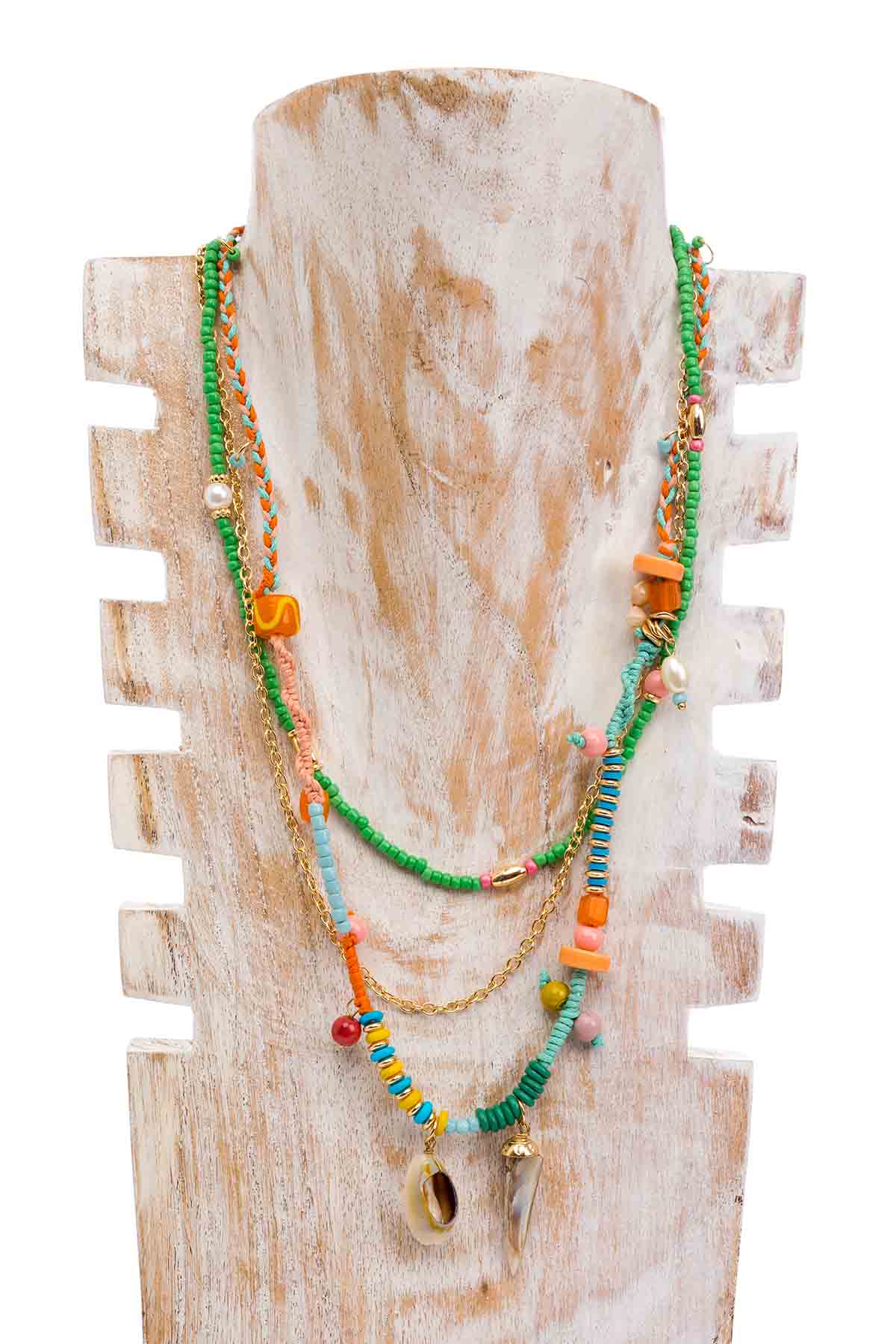 COLLAR DE VARIAS VUELTAS CON ABALORIOS DE COLORES Y METAL