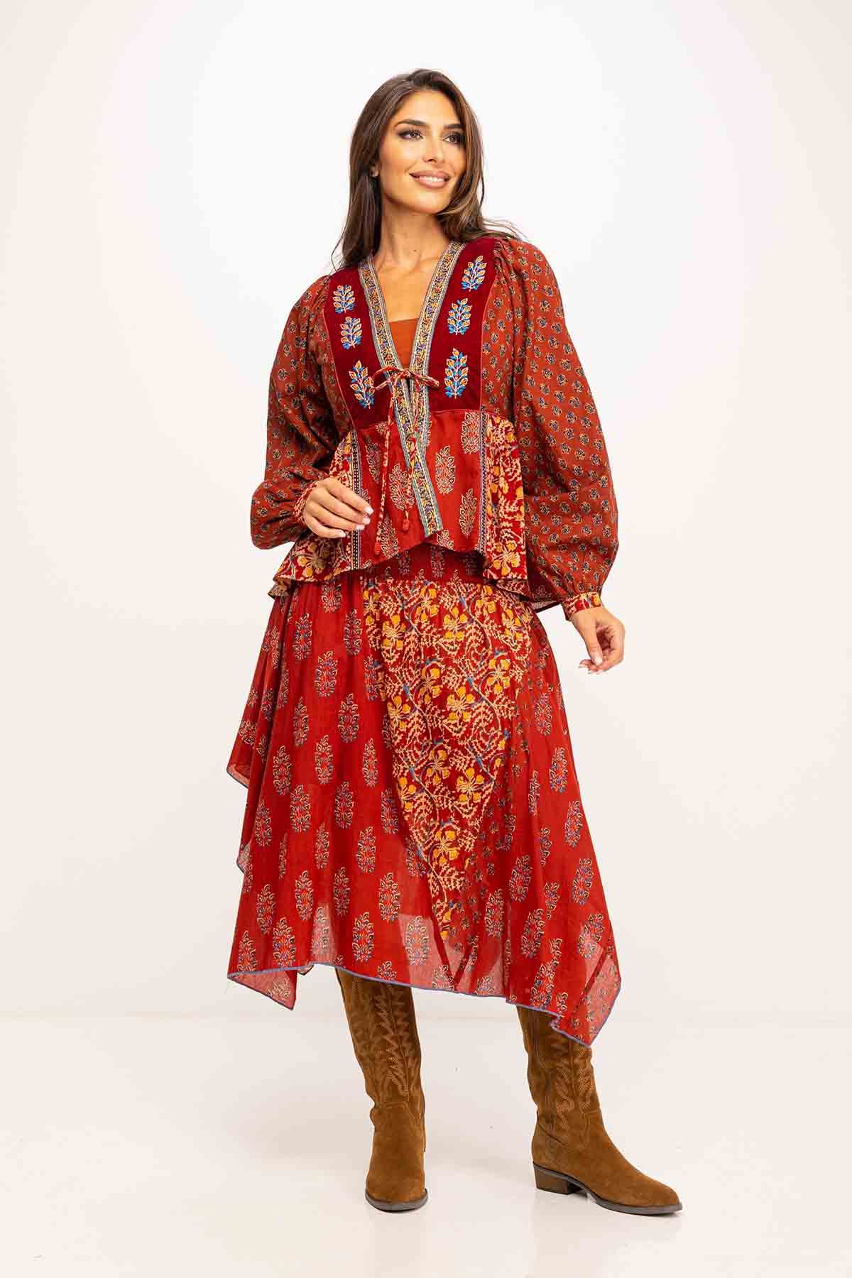 COTTON PRINTED SKIRT WITH PATCWORK 100%ALGODON