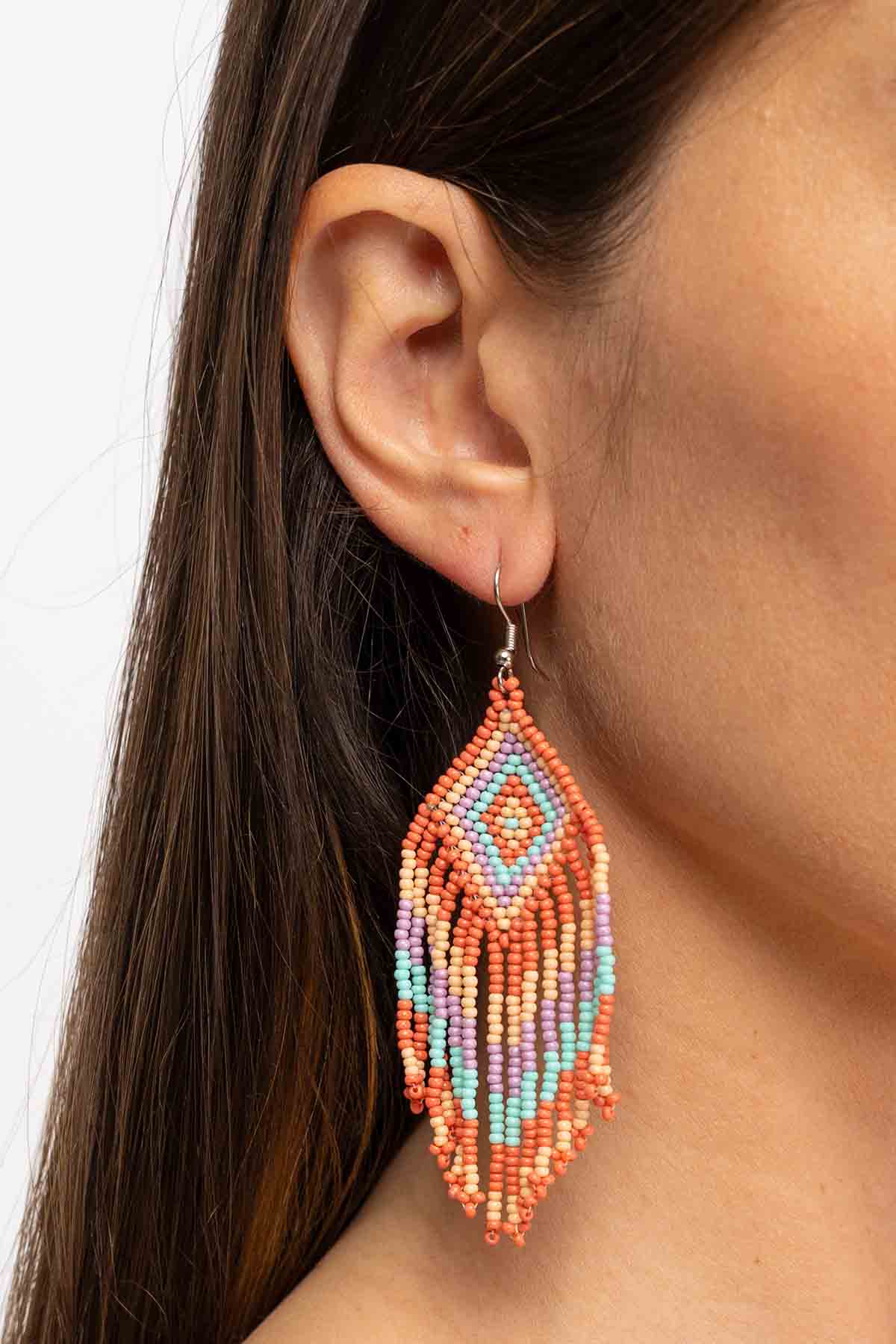 PENDIENTES COLGANTES DE ABALORIOS DE COLORES MONTADOS EN METAL