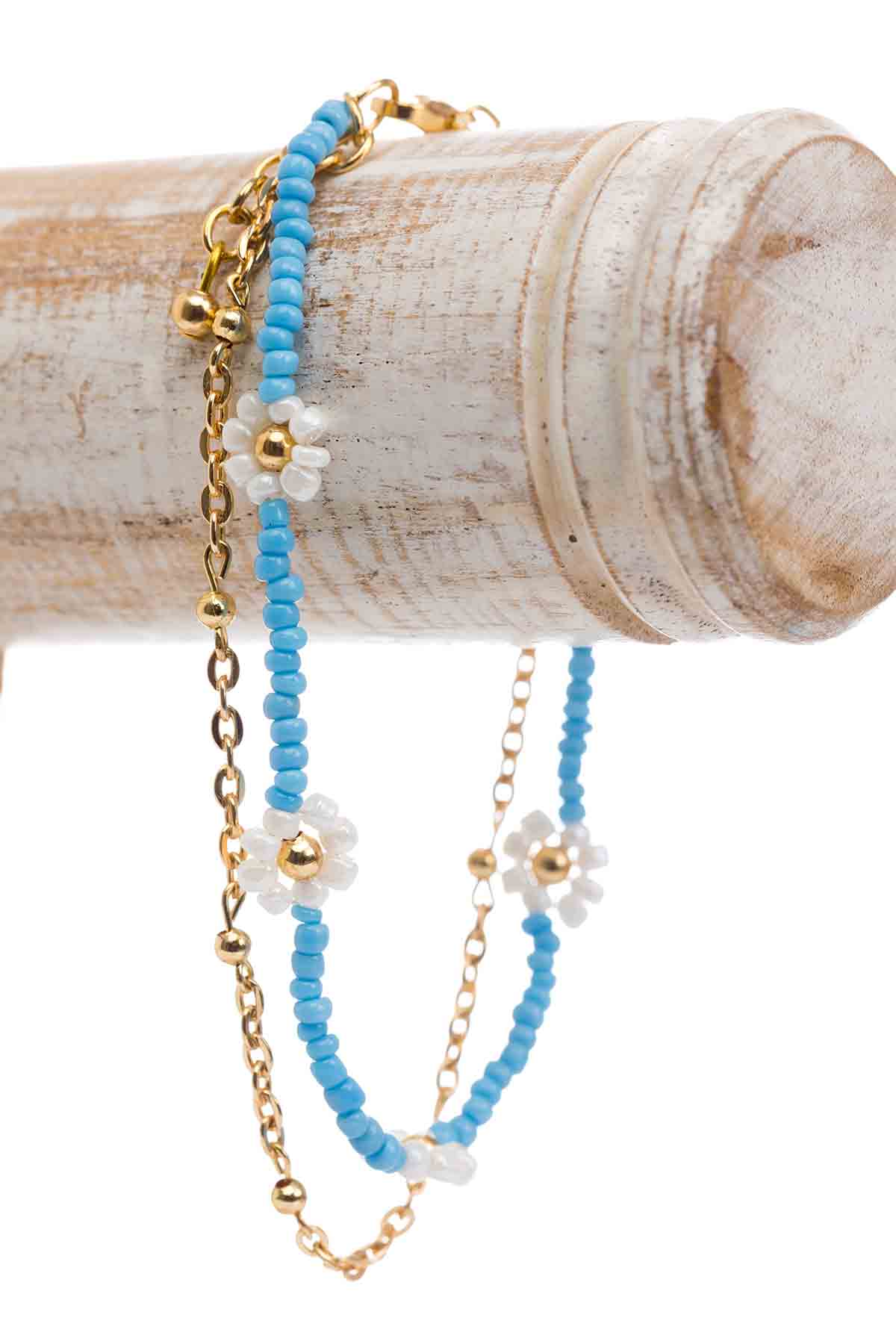 TOBILLERA DE VARIAS VUELTAS EN METAL Y ABALORIOS DE COLORES METAL Y AVALORIOS