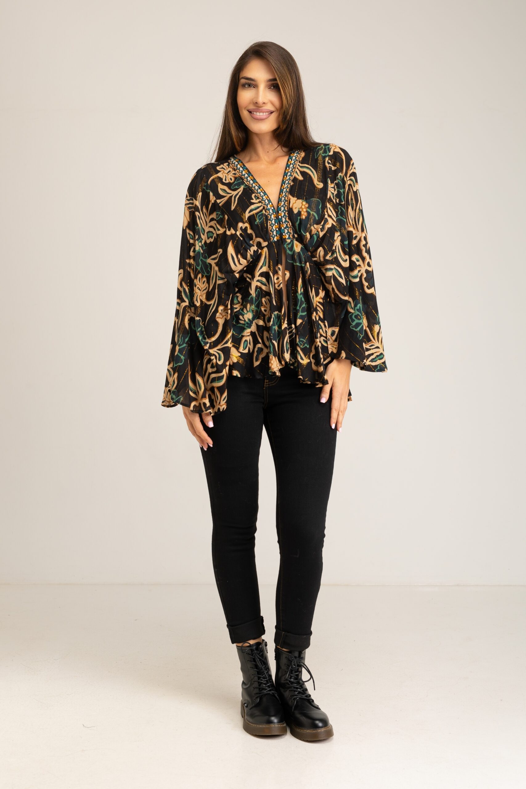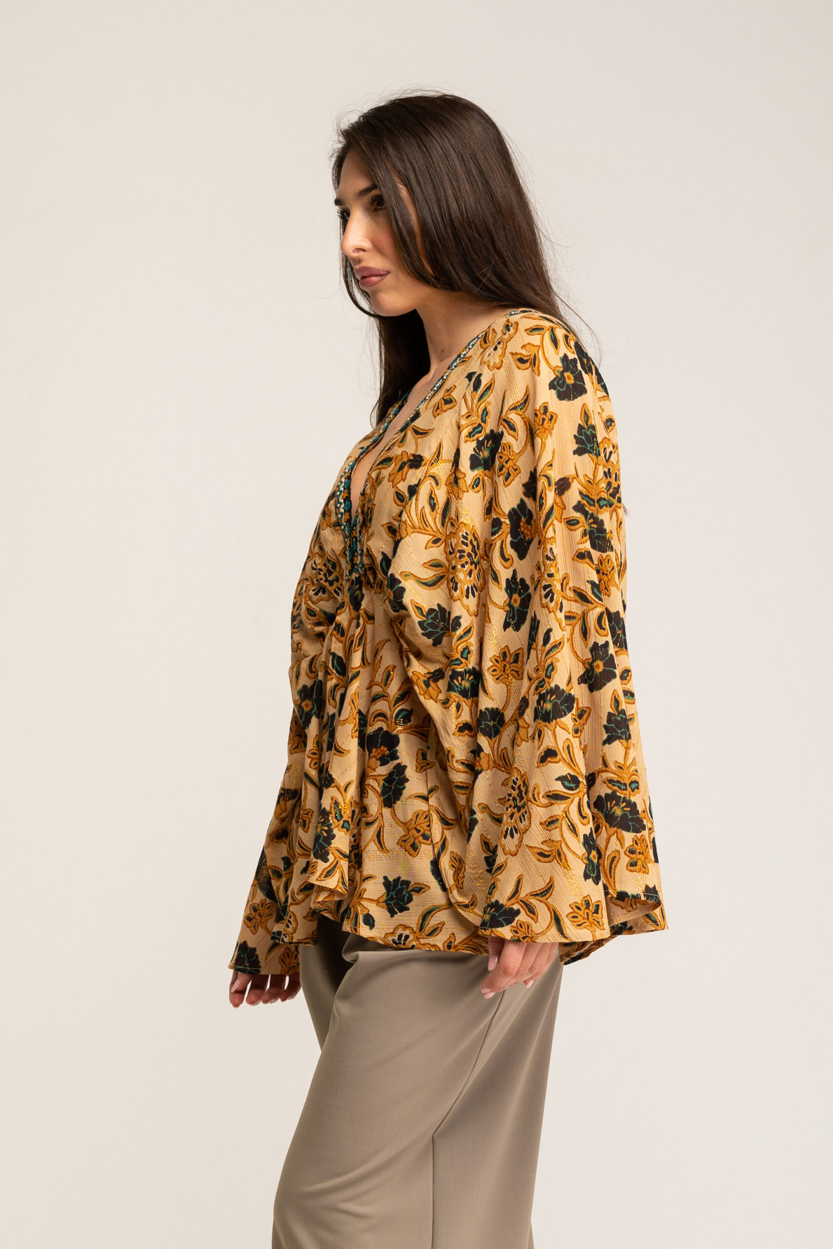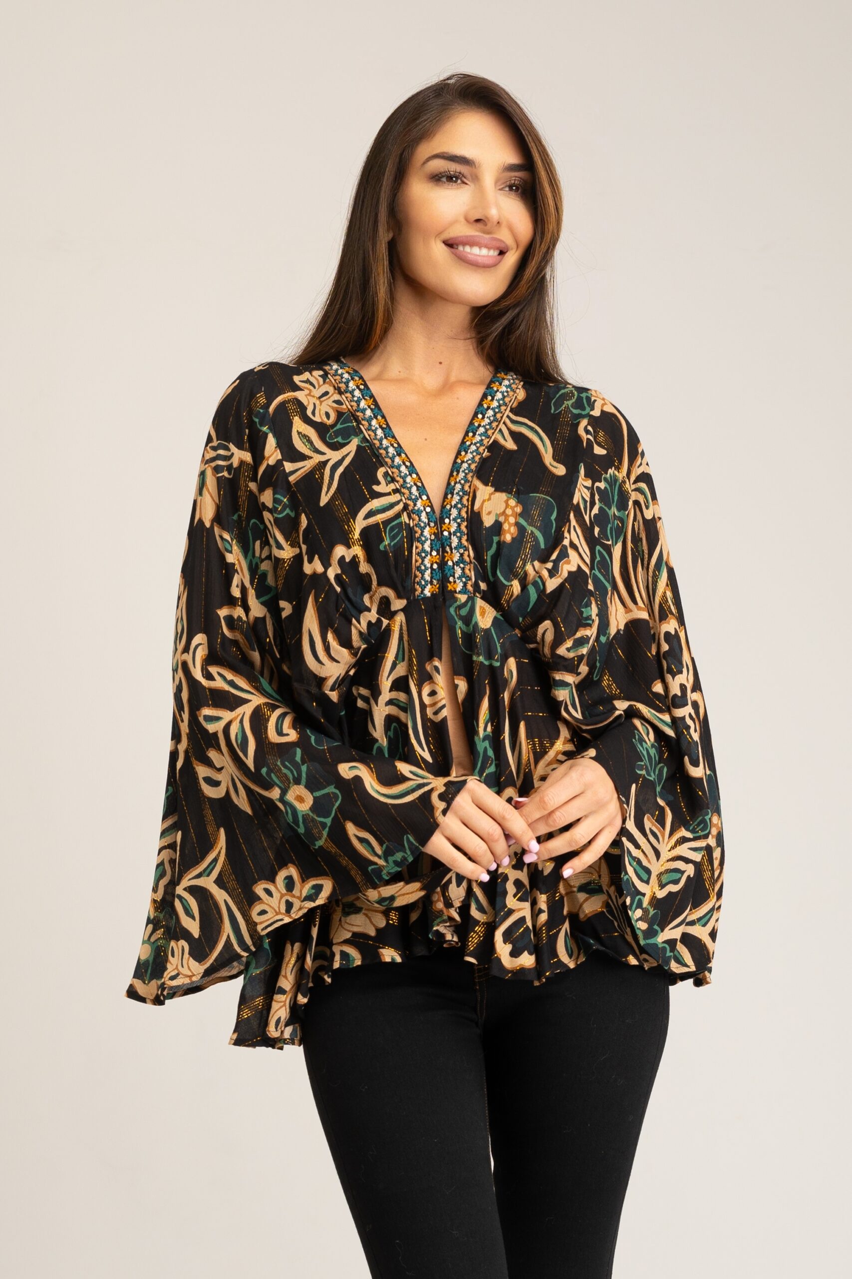 TUNICA VISCOSA LUREX ESTAMPADA CON BORDADOS