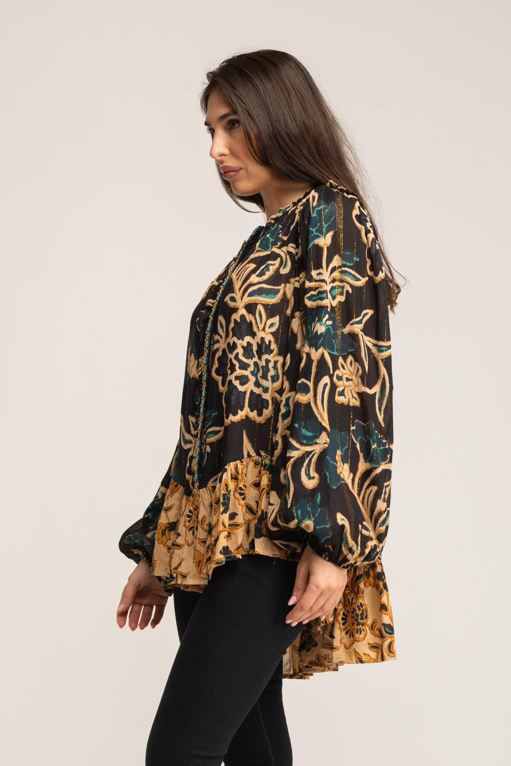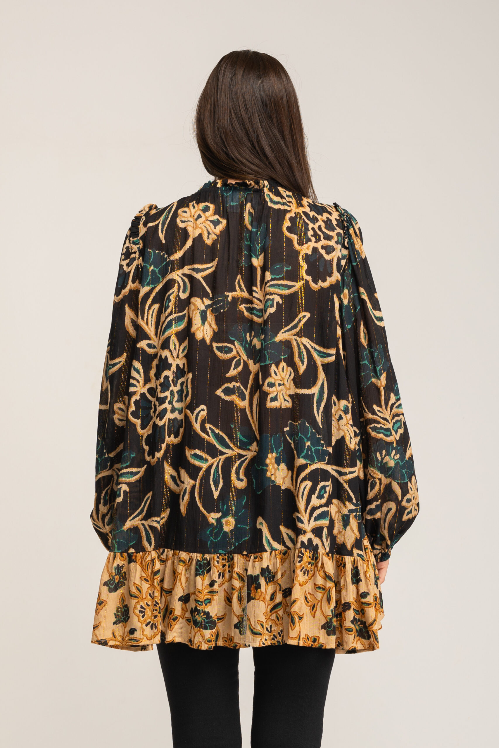 TUNICA VISCOSA LUREX ESTAMPADA CON VOLANTE