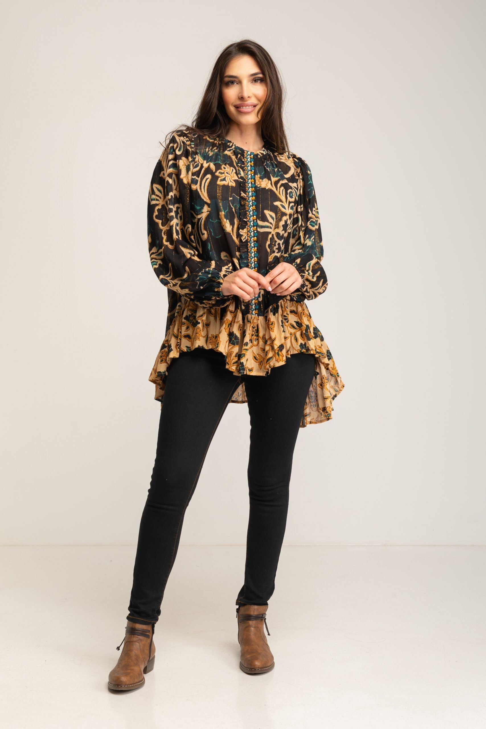 VISCOSA LUREX OVERSIZE TUNIC PRINTED WITH FRILL 95%VISCOSA 5%LUREX