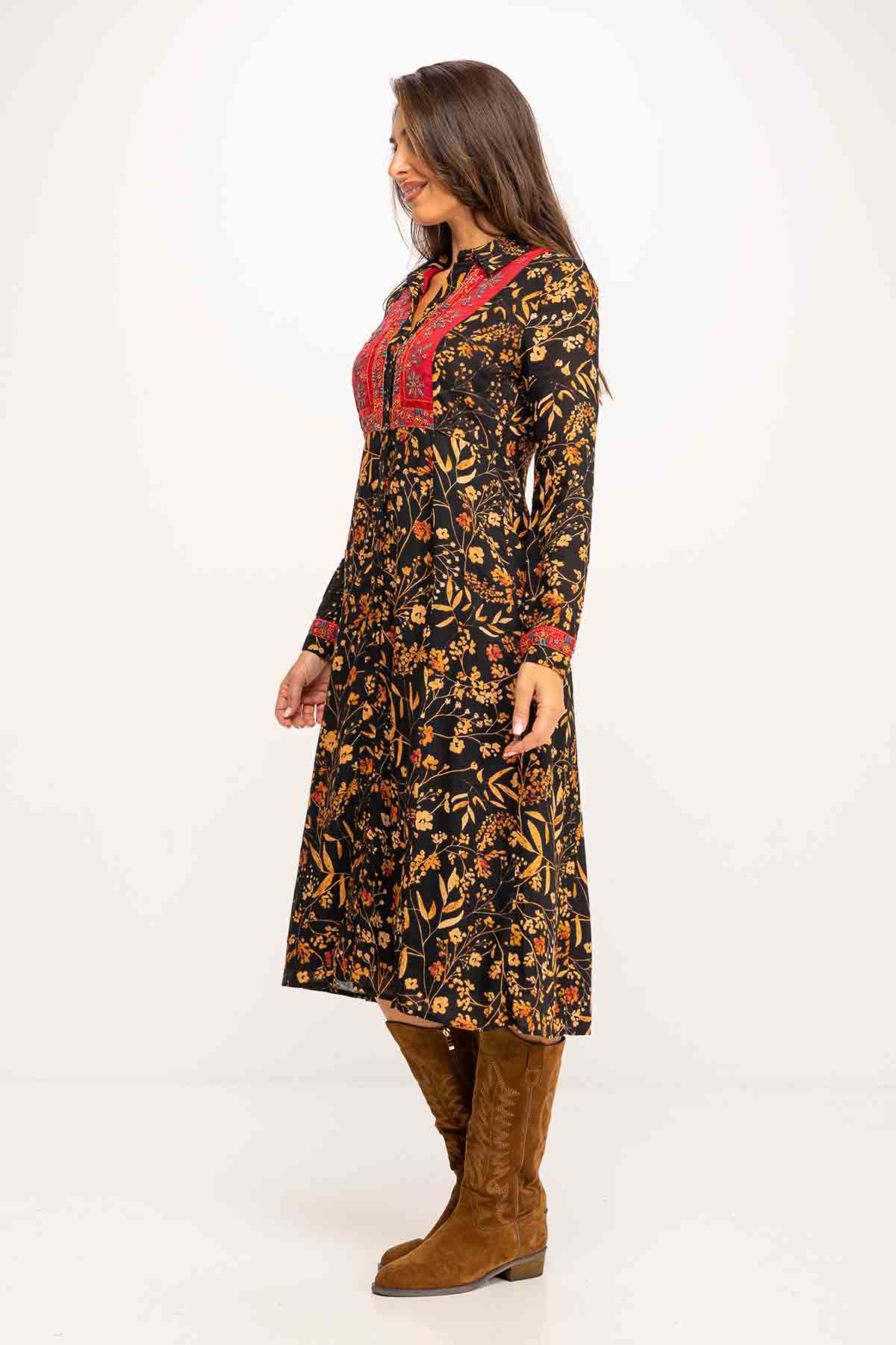 LONG DRESS WITH COLLAR AS SHIRT OPEN UNTIL WAIST WITH EMBROIDERYS 100%VISCOSA