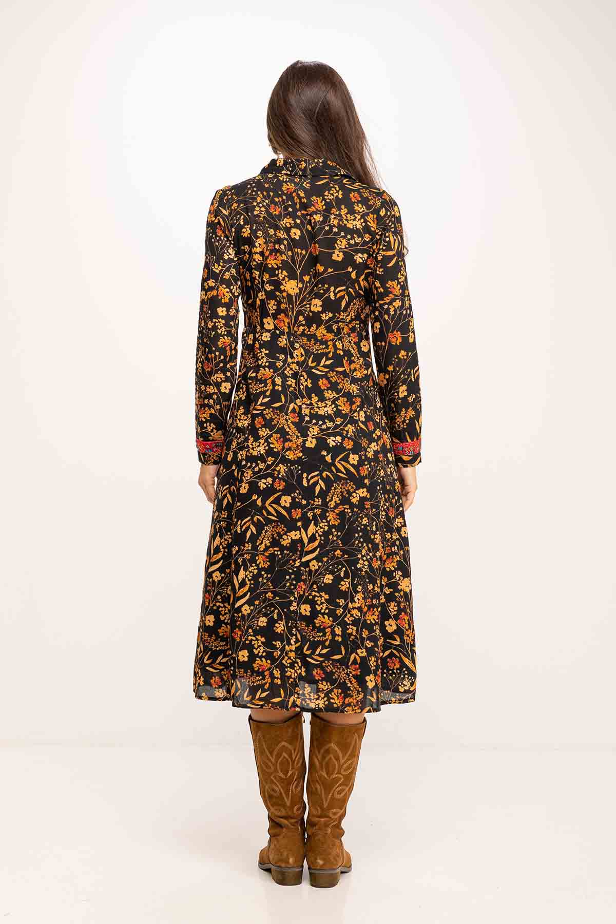 VESTIDO LARGO CUELLO CAMISERO ABIERTO HASTA CINTURA CON BOTONES Y BORDADOS