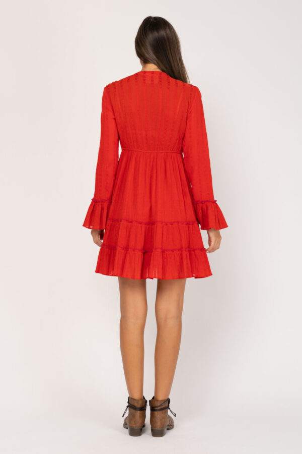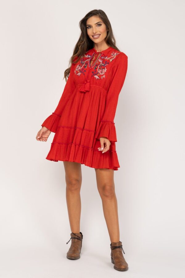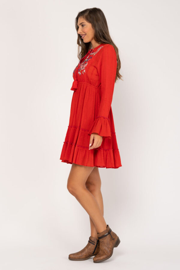 SOLID COTTON DRESS EMBROIDERY AND BELL CUFF 100%ALGODON