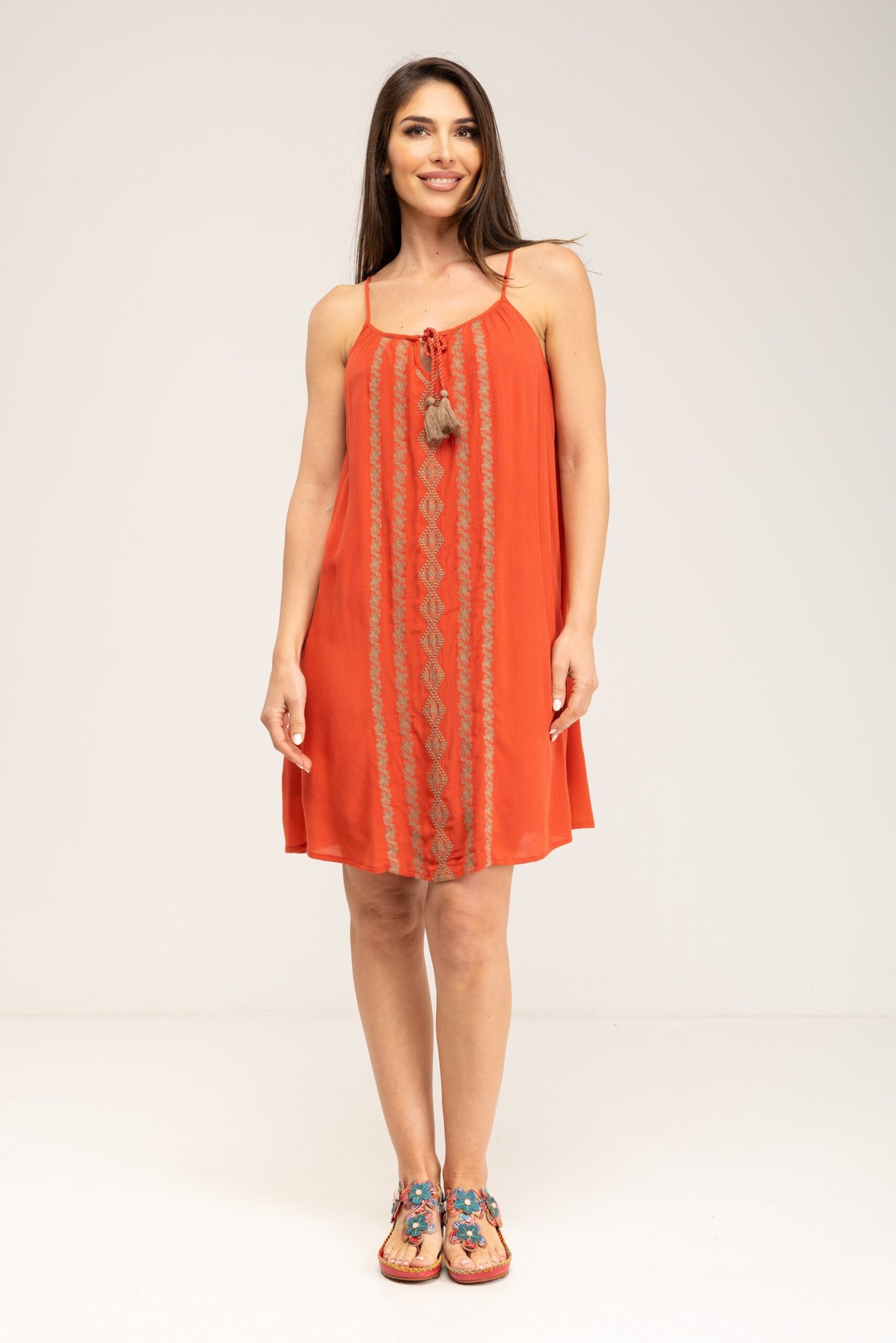 VESTIDO LISO BORDADO BICOLOR DE TIRANTE FINO 100% VISCOSA